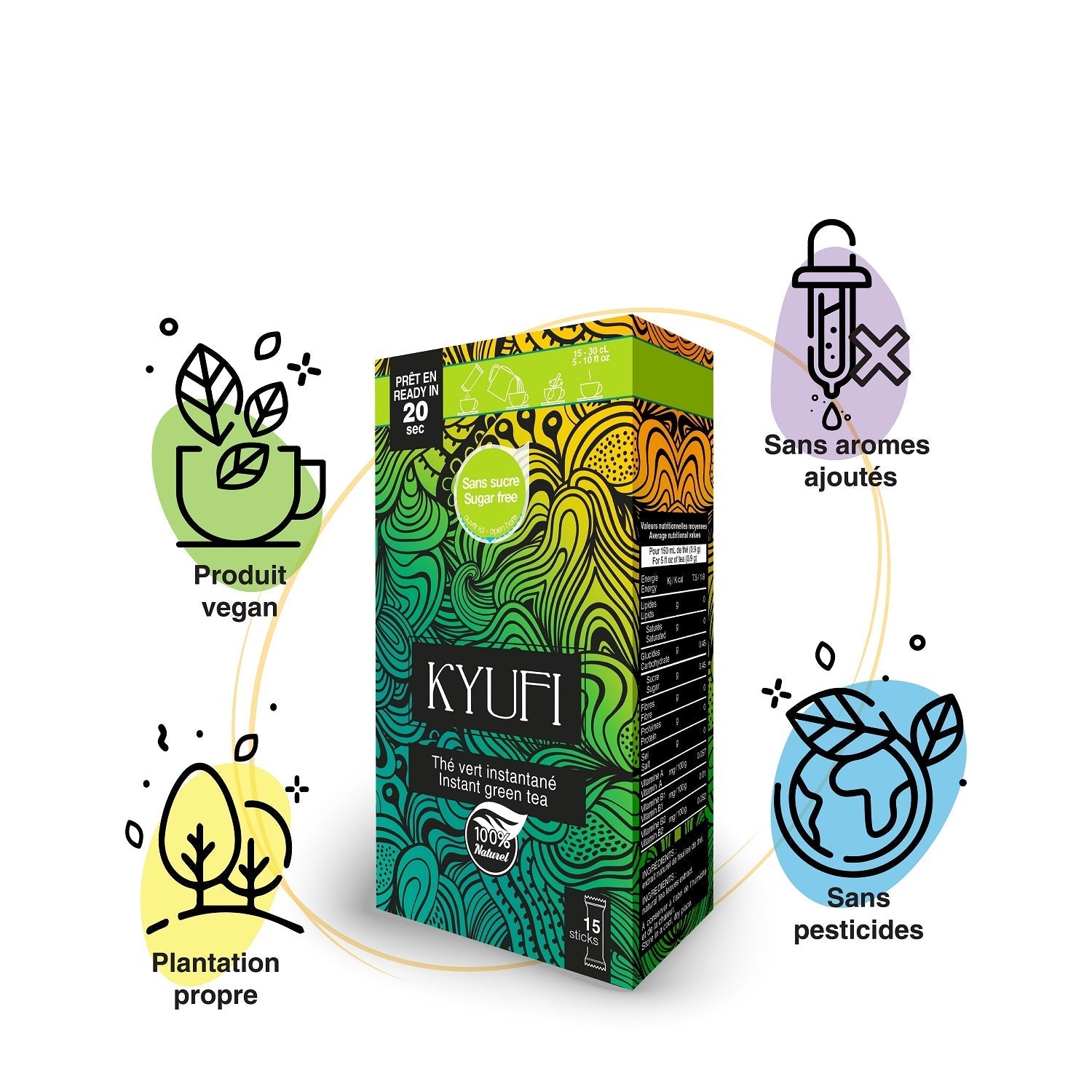 Le thé vert Kyufi est votre partenaire pour une bonne santé dans le cadre d’une cure de bien être ou juste pour le plaisir des papilles sa forte teneur en puissants antioxydants naturels vous aide à éliminer les toxines de votre corps, à perdre du poids et à vous préserver des maladies cardiovasculaires. Essayez, vous aller adorer!